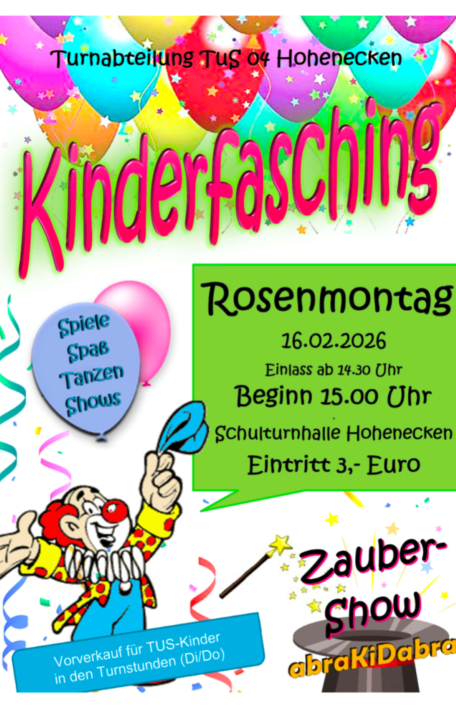 Fasching beim TuS 04 Hohenecken 2026 mit dem Motto "We love Fassenacht".